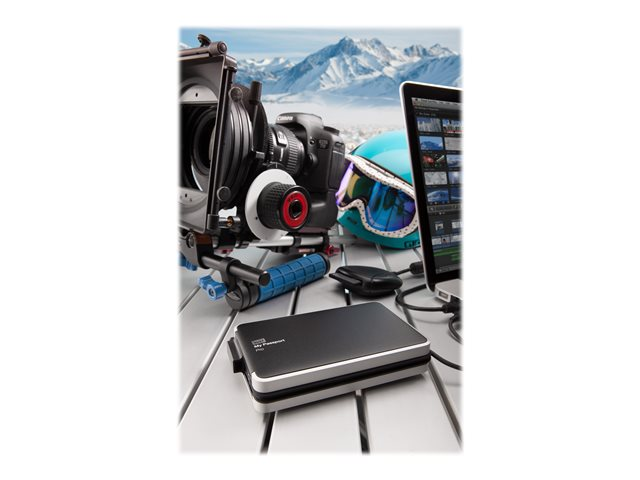 The anodized, all-aluminum enclosure helps protect the drives inside so whether you're filming a new documentary out in the field or presenting your portfolio to a client, My Passport Pro is designed for any on-the-go workflow.