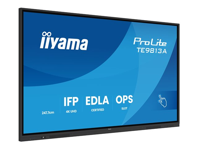 | Egenskaper | Zero-Gap Air Bonding, 88 % ljustransmittans, 10-bit (8-bit + Hi-FRC), PureTouch-IR+ teknik, Palm Rejection, integrerad iiWare 21E programvara, OSD nyckellås, blåljusreducering, flimmerfri teknologi, MTBF 50000 timmar, 200 Hz skanningsfrekvens, iiyama Device management System (DMS), +/- 1 mm beröringsnoggrannhet |
