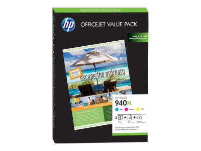 HP 940XL Officejet Brochure Value Pack - 3-pack - gul, cyan, magenta - bläckpatron/papperssats - för Officejet Pro 8000, 8500, 8500 A909a, 8500A, 8500A A910a, 8500A A910d