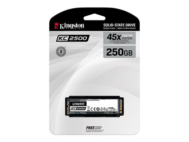 Kingston KC2500 - SSD - krypterat - 250 GB - inbyggd - M.2 2280 - PCIe 3.0 x4 (NVMe) - 256-bit AES-XTS - Self-Encrypting Drive (SED), TCG Opal Encryption 2.0