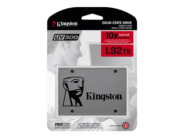 Kingston UV500 - SSD - krypterat - 1.92 TB - inbyggd - 2.5" - SATA 6Gb/s - 256 bitars AES - TCG Opal Encryption 2.0, Self-Encrypting Drive (SED) SUV500/1920G