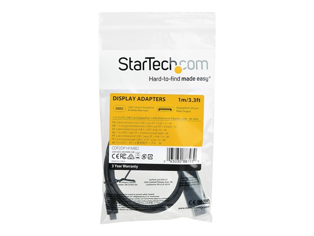 StarTech.com 1 m USB-C till DisplayPort 1.4-kabel - dubbelriktad - DisplayPort-kabel - USB-C (hane) till DisplayPort (hona) - USB 3.1 / Thunderbolt 3 / DisplayPort 1.4 - 1 m - aktiv, 8K UHD-stöd (7680 x 4320) - svart