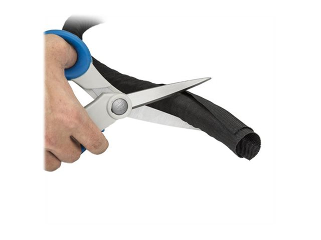 - Kabelstrumpan (tillverkad i slitstark polyester och nylon) är lätt att öppna för att föra in kablar och drar sig sedan automatiskt tillbaka runt kablarna