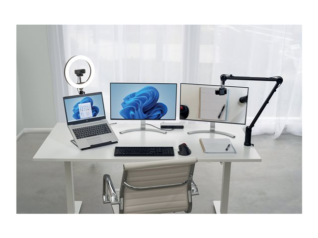 Kensingtons W1050 1080p webbkamera med vidvinkel och fast fokus är en professionell och kostnadseffektiv webbkamera som levererar högkvalitativ video (1080p vid 30 fps), rundstrålande mikrofoner och unika funktioner för sekretess, kameraplacering och bättre skärpa vid låga ljusnivåer. W1050 är optimerad för att hjälpa dig att synas som bäst i dagens populäraste videokonferensapplikationer och är en del av Kensingtons ekosystem för professionella videokonferenser – en kraftfullt sammanhållen upplevelse med programvara och tillbehör som hjälper dig att ägna mer tid åt samarbete och mindre tid åt att felsöka. Oavsett om du arbetar hemifrån eller på kontoret, behöver få in fler personer i bild eller undervisar eller studerar så presenterar W1050 dig helt enkelt bara bättre – på Microsoft Teams, Google Meet Zoom med mera.