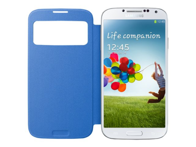 Samsung S View EF-CI950B - Vikbart fodral för mobiltelefon - polyuretan, polykarbonat - ljusblå - för Galaxy S4 EF-CI950BCEGWW