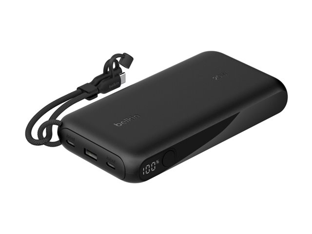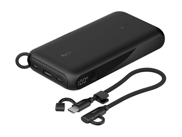 Belkin BoostCharge - Power bank - med display - 20000 mAh - 20 Watt - PD - 3 utdatakontakter (2 x USB-C, USB) - på kabel: USB-C - svart