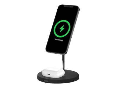 Belkin BoostCharge Pro MagSafe 2-in-1 - Trådlöst laddställ + växelströmsadapter - 15 Watt - Fast Charge - svart - för Apple AirPods; AirPods Pro; iPhone 12, 12 mini, 12 Pro, 12 Pro Max