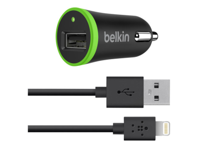 Belkin Car Charger - Strömadapter för bil - 10 Watt - 2.1 A (USB) - på kabel: Lightning - svart
