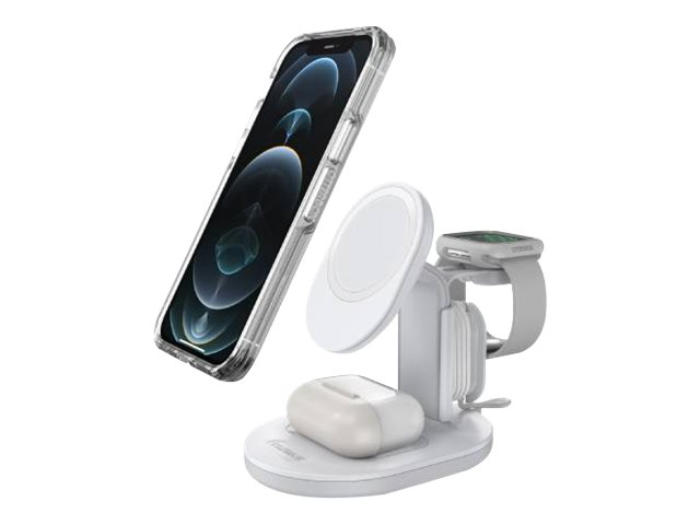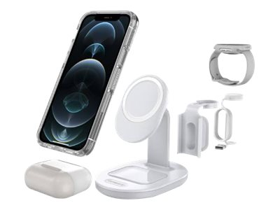 OtterBox - Trådlöst laddställ - 3-i-1 - lucid dreamer, vit, silver - för Apple iPhone 12, 12 mini, 12 Pro, 12 Pro Max, 13, 13 mini, 13 Pro, 13 Pro Max 78-80598