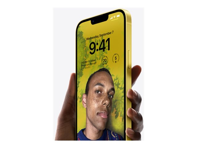 Apple iPhone 14 - 5G smartphone - dual-SIM / Internminne 256 GB - OLED-skärm - 6.1" - 2532 x 1170 pixlar - 2 bakre kameror 12 MP, 12 MP - front camera 12 MP - gul MR3Y3QN/A