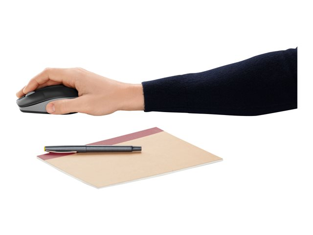 Logitech M190 är en normalstor trådlös mus med en bekväm rundad design som följer medelstora och stora händers naturliga kurva. Detta gör att du kan arbeta trådlöst och röra dig mer fritt. Praktiskt tagit utan tappade anslutningar.
