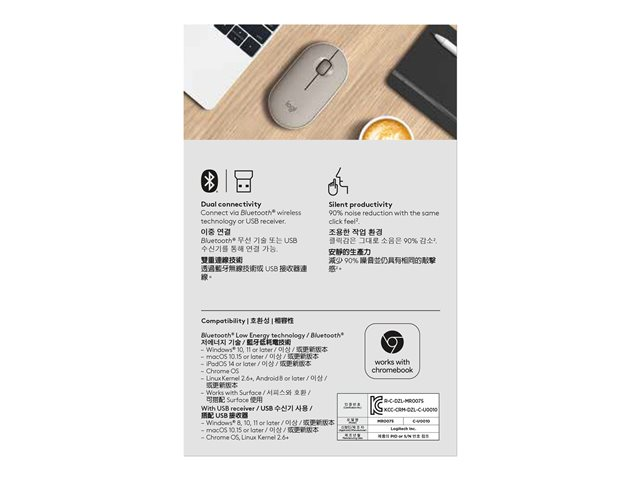Logitech Pebble M350 - Mus - optisk - 3 knappar - trådlös - Bluetooth - trådlös USB-mottagare - sand