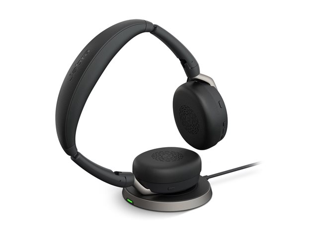 Jabra Evolve2 65 Flex MS Stereo - Headset - på örat - Bluetooth - trådlös - aktiv brusradering - USB-C - svart - med trådlös laddningsplatta - Certifierad för Microsoft-teams