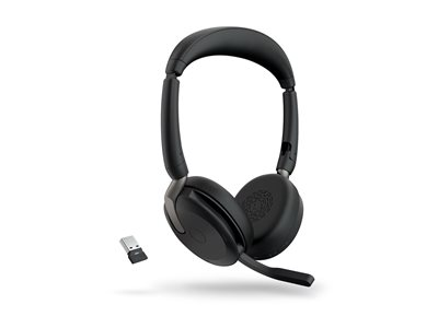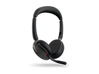 Jabra Evolve2 65 Flex UC Stereo - Headset - på örat - Bluetooth - trådlös - aktiv brusradering - USB-A - svart - med trådlös laddningsplatta - Optimerad för UC