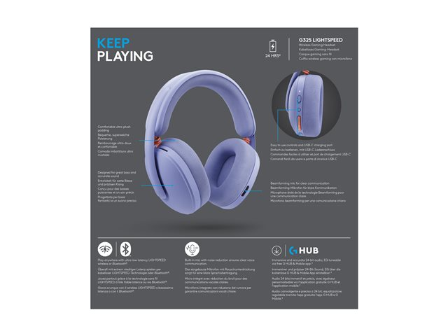 Logitech G G325 - Headset - fullstorlek - Bluetooth / LIGHTSPEED - trådlös - USB-C via Bluetooth-adapter - lila 981-001538