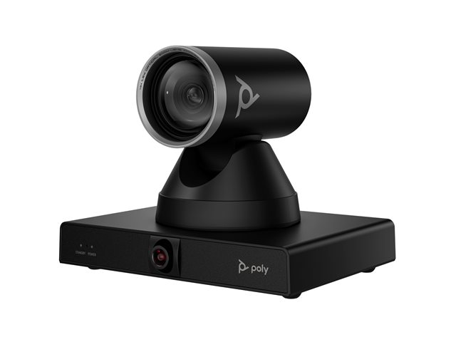 EgenskaperMotoriserad panna, motoriserad lutning, motoriserad zoomning, dubbel lins, 71° horizontal field of view (PTZ camera), 107° horizontal field of view (panoramic camera), up to 10m camera range, Group framing, presentatörsspårning, Poly DirectorAI-teknik, 78.1° diagonal field of view (PTZ camera)