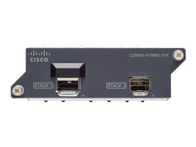 Hybridmodulen FlexStack-Extended har en SFP+-port och en FlexStack-Plus-port i koppar. Med fiberporten kan du förlänga stackningen över långa avstånd.