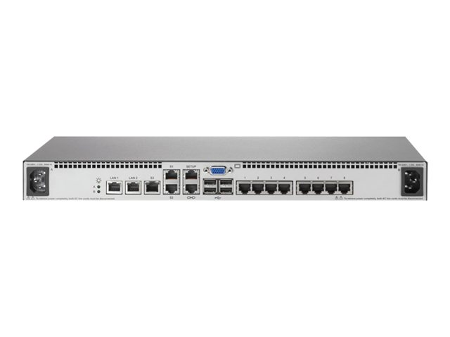 HPE IP Console G2 Switch with Virtual Media and CAC 1x1Ex8 - Omkopplare för tangentbord/video/mus - 8 x KVM port(s) - 1 lokal användare - 1 IP-användare - skrivbordsmodell - för HPE 10XXX G2, 600, 800; Advanced Series Racks 42U 600; ProLiant DL20 Gen9, e2000 G6; Rack AF620A