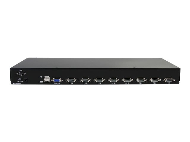 SV831DUSBU 8 portars 1U hyllmontering USB KVM-switchen med OSD har ett pålitligt datorhanteringsverktyg som låter dig kontrollera upp till 8 USB-anslutna datorer från en enda uppsättning av tangentbord, mus och skärm.