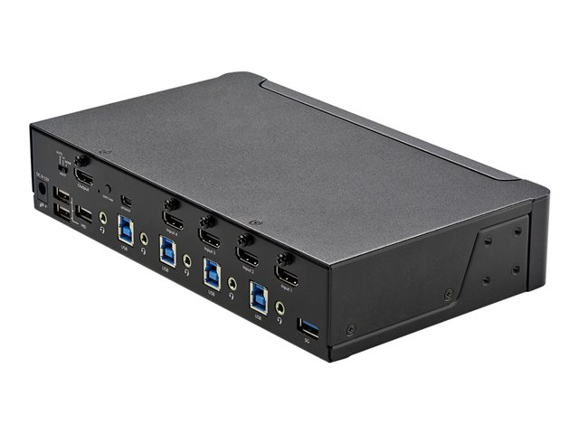 StarTech.com 4-ports HDMI KVM-switch - En skärm 4K 60 Hz Ultra HD HDR - Desktop HDMI 2.0 KVM-switch med 2 portar USB 3.0-hubb (5 Gbit/s) och 4x USB 2.0 HID, ljud - Snabbtangenter för omkoppling - TAA - Omkopplare för tangentbord/video/mus/ljud - 4 x KVM/ljud - 1 lokal användare - skrivbordsmodell, rackmonterbar - TAA-kompatibel