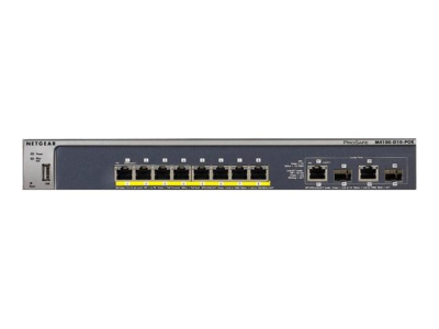 NETGEAR M4100-D10-PoE - Switch - L2+ - Administrerad - 8 x 10/100 (PoE) + 2 x 10/100/1000 + 2 x kombinations-SFP - skrivbordsmodell, väggmonterbar - PoE