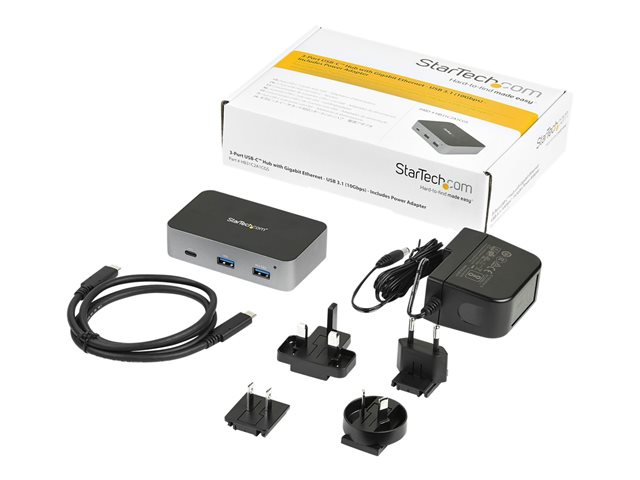 StarTech.com 3-Port USB-C hubb med LAN Port - 10 Gbit/s - 2x USB-A & 1x USB-C - strömförsörjning - Hubb - 1 x USB-C + 2 x USB 3.1 + 1 x 10/100/1000 - skrivbordsmodell - AC 110/240 V - för P/N: PEXUSB321C HB31C2A1CGS