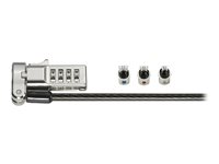 Ett kombinationslås som gör allt. Det universella 3-i-1 kombinationslåset för bärbar dator passar alla säkerhetsplatser - standard, nano och kilformade - och hjälper dig att "säkra framtiden" för din låsningslösning. Återställ justerbar 4-hjulslås med 10 000 möjliga kombinationer och stark stålkabel ger maximal säkerhet mot stöldförsök. Ytterligare funktioner inkluderar Register & Retrieve för snabb, säker och enkel hämtning av kombinationer; och fem års garanti med stöd av Kensington, uppfinnaren och världsledande inom bärbara säkerhetslås. Alla Kensington-lås är verifierade och testade för styrka, fysisk hållbarhet och mekanisk motståndskraft.