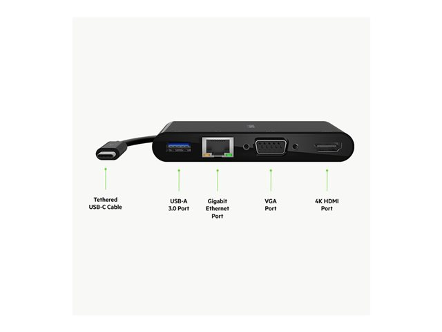 Belkin - Multimedia- och laddningsadapter - USB-C - VGA, HDMI - 1GbE AVC004BTBK